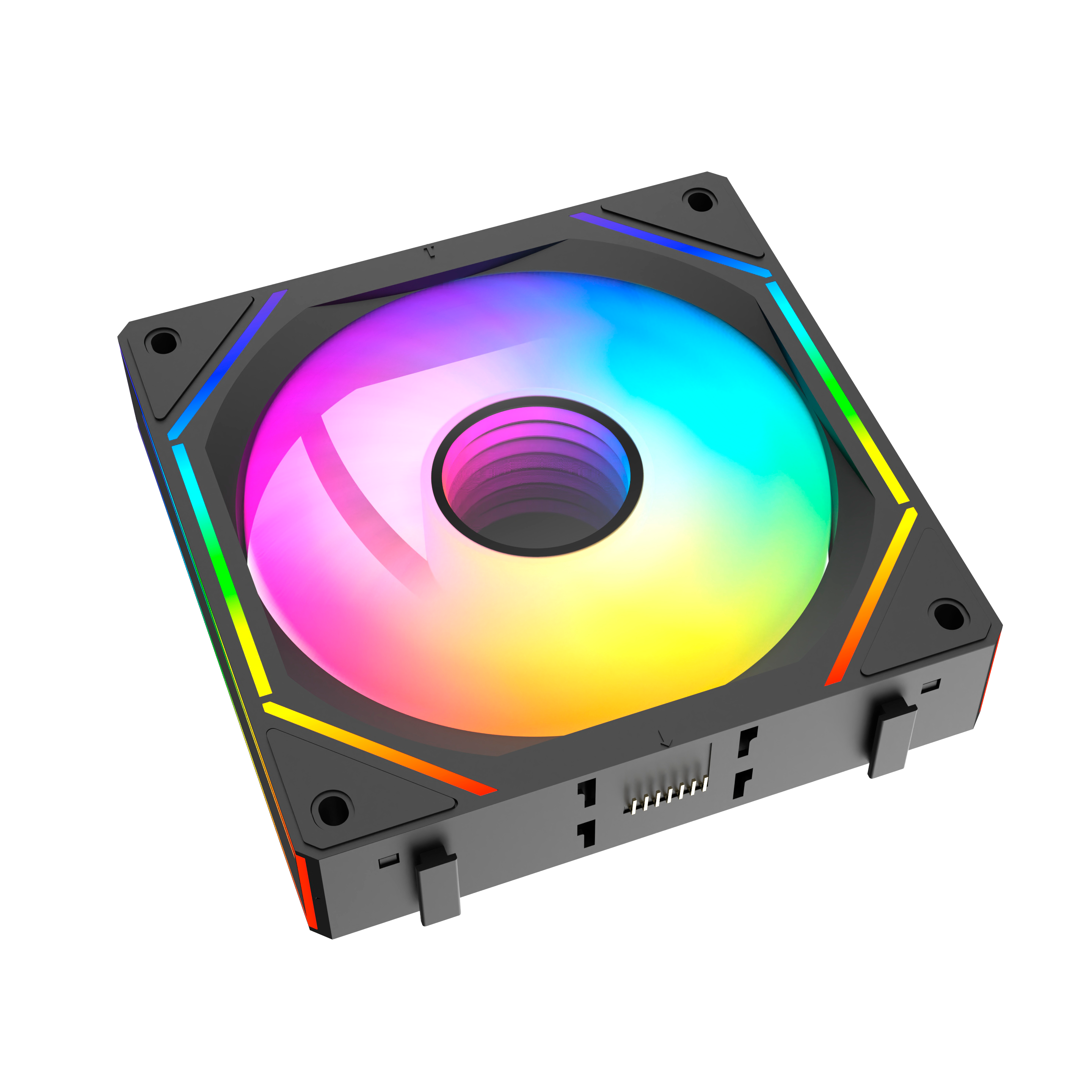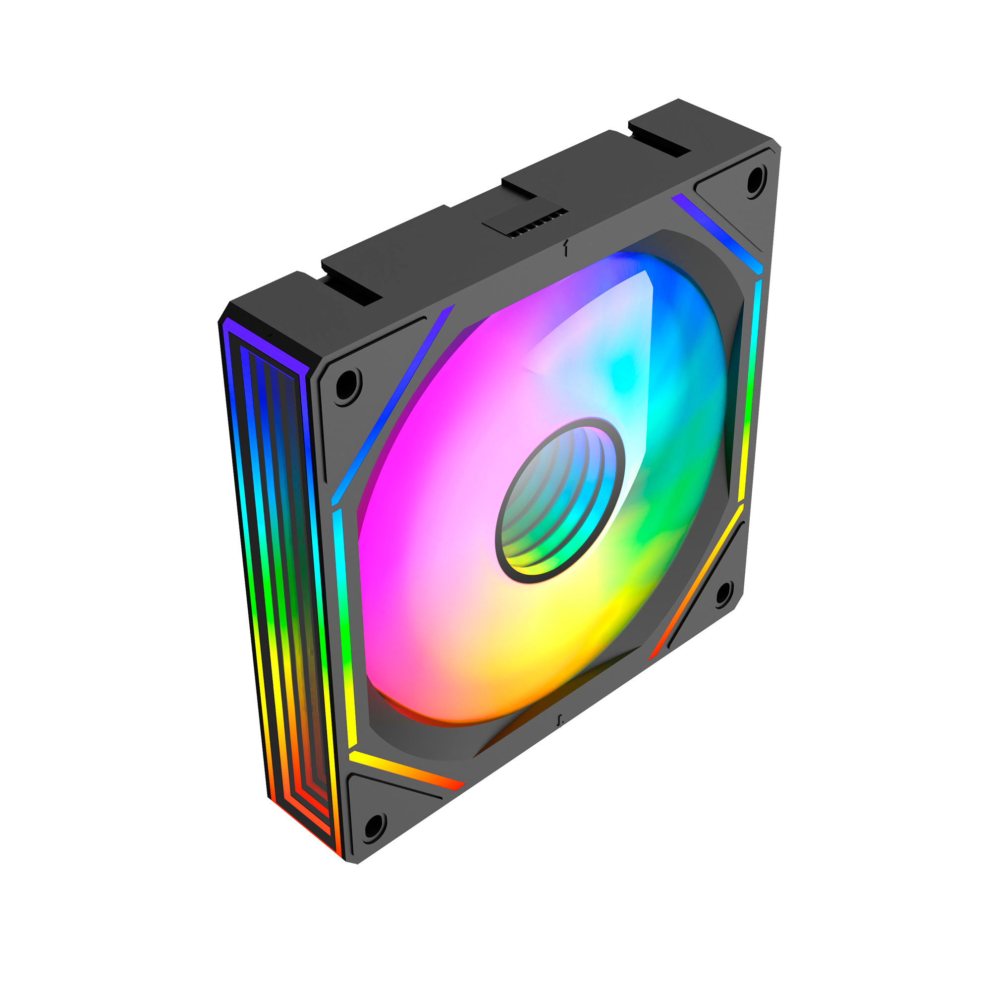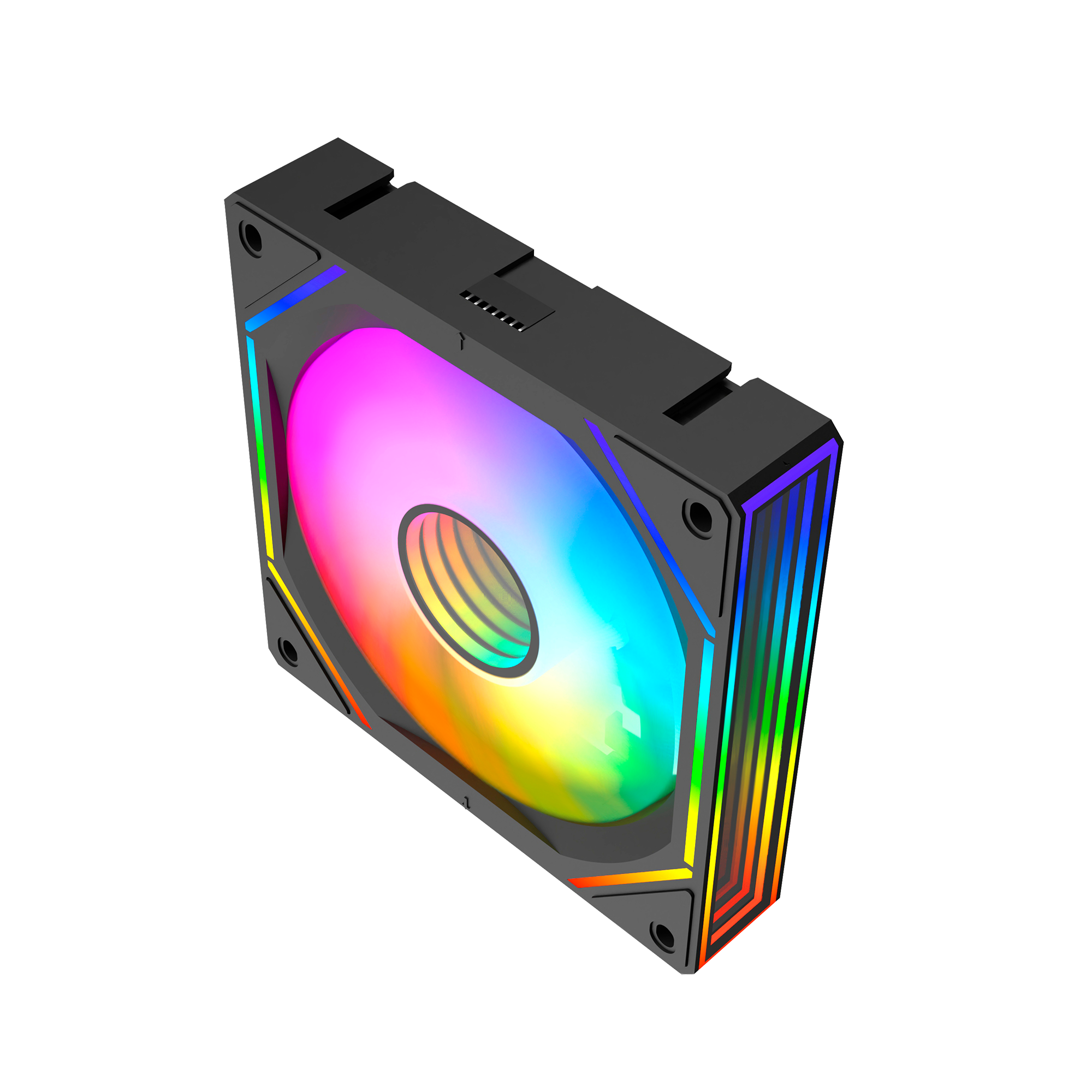 Cor do Ventilador: Preto Tamanho: 120mm Conexão PWM: Macho + Fêmea Conexão AURA 5V (3 PIN): Macho + Fêmea Acabamento: Slim Ring + Efeito CD Pattern Sistema Antivibração: 4 Pads EVA |